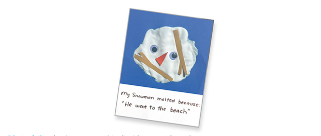 - Let the artwork dry overnight. Then ask each child, "Why did your snowman melt?" Write their responses on the bottom of the paper. fine-motor skills/storytelling